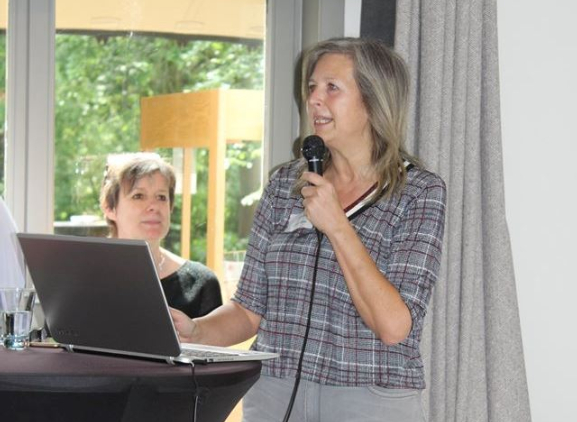 Mevrouw Agnes Lannoo-Van Wanseele licht haar visie over ondernemen in Latem toe.
