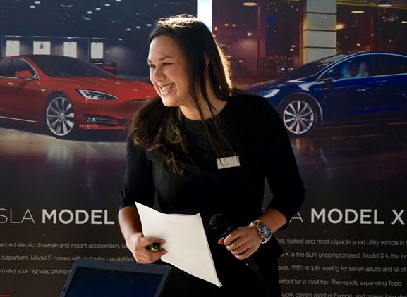 Mevrouw Agnes Lannoo-Van Wanseele licht haar visie over ondernemen in Latem toe.